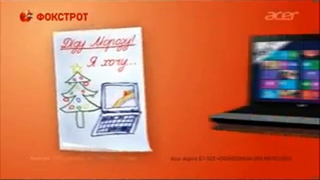 http://adlog.tv/6029.htm?v=2 онлайн архив всех видеороликов с текстами Реклама: "Фокстрот". Сезон здійснення бажань. Ноутбук Acer. 25 с версія. (Украинское ТВ)