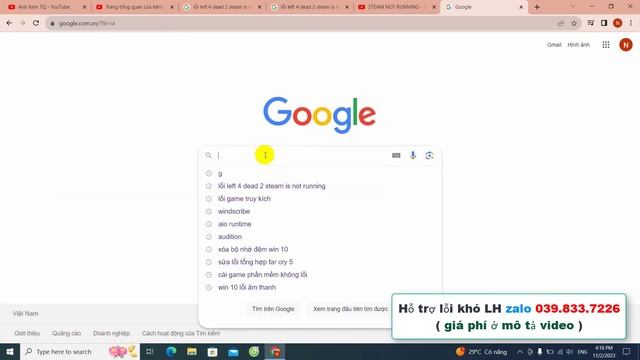Hello cả nhà ( ZALO CỦA MÌNH LÀ 039.833.7226 CÀI VÀ SỬA MỌI LỖI MÁY TÍNH GIÁ 250K - 500K TÙY ĐỘ KHÓ ) - kênh mình chuyên sửa máy tính uy tín chất lượng nếu không sửa được bank lại tiền. giảm 50k cho khách quay lại lần 2 - sửa máy tính cài game, phần mềm. sửa lỗi game, lỗi phần mềm, lỗi win. riệt virus windows, tạo shop bán hàng. và mọi yêu cầu về công nghệ vui lòng liên hệ trực tiếp để trao đổi ( không nhận làm vấn đề không hợp pháp trái pháp luật nhé ) - các dịch vụ khác các vui lòng liên hệ để trao đổi trực tiếp - kênh mình tạo ra nhằm mục đích giúp đỡ cho con người và xã hội. giúp ích về các vấn đề online, bạn nào có lỗi gì hoặc cần tìm hiểu gì có thể cmmt phí mô tả để admin có thêm chủ để làm video cho mọi người chi tiết:99% fix được. Sau khi cài steam và login rồi mà bật game bị văng ra thì out ra ngoài. Nhất exit vào biểu tượng steam ở góc phải màn hình (tốt nhất là nên vào Task manager và tìm cái task tên steam tắt trong đó là steam đã đóng). Sau khi tắt thì mở lại lần nữa và vào game là oke.