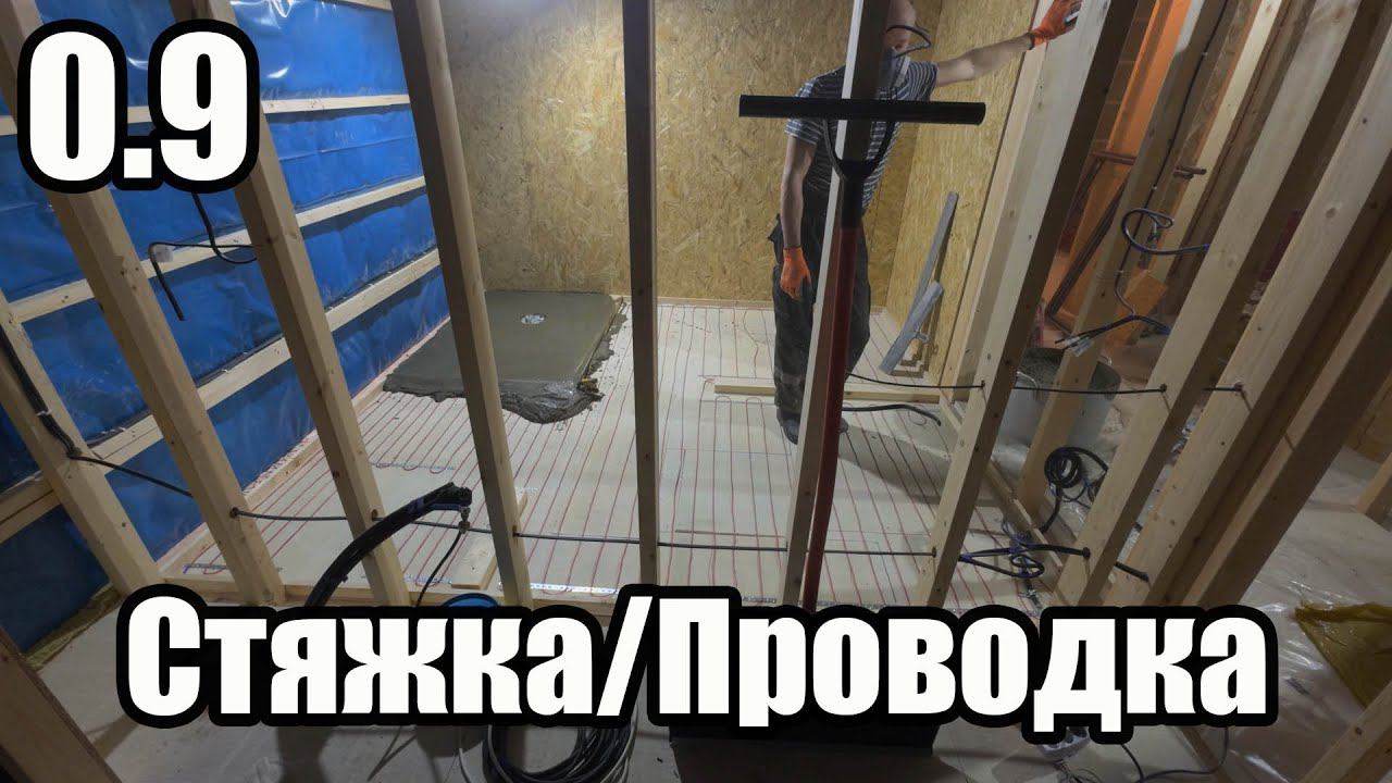 0.9 Дом у леса стяжка санузла. Проводка внутри каркасной стены. Контрутепление поверх пароизоляции