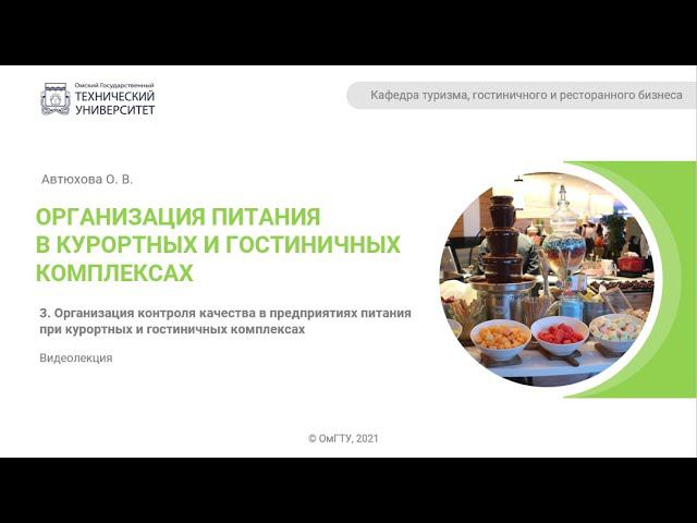 Онлайн-курс ОмГТУ по дисциплине «Организация питания в курортных и гостиничных комплексах» на Stepik https://stepik.org/course/97604/syllabus. Автор: Автюхова Оксана Владимировна, к.т.н., доцент кафедры «Туризма, гостиничного и ресторанного бизнеса» ОмГТУ. В этом видео вы познакомитесь с этапами обеспечения качества, узнаете, от чего и от кого зависит безопасность продукции в отелях и ресторанах.