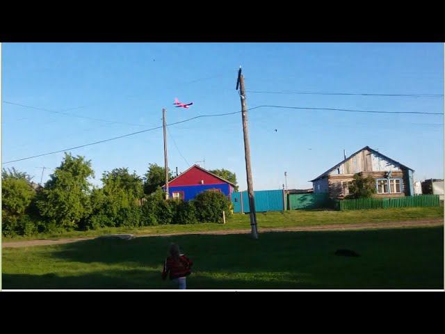 Пенопластовый самолёт летит над деревней.Вечерняя прогулка.