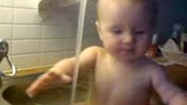 I Badar i diskhon - Försöker fånga vattnet.