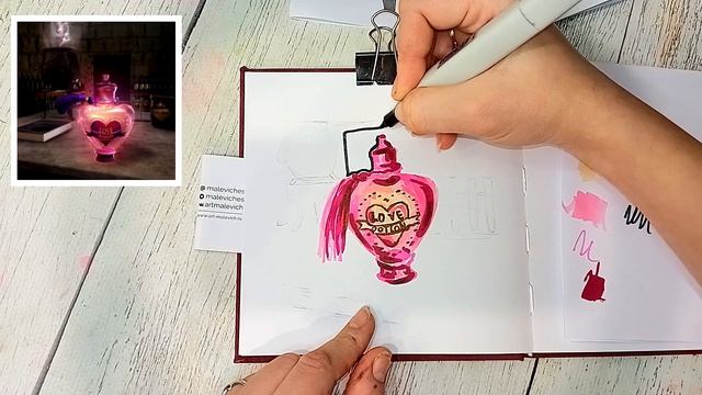 Любовное зелье. Love potion. Бесплатный урок рисования. Рисуем маркерами. Рисуем по Гарри Поттеру.