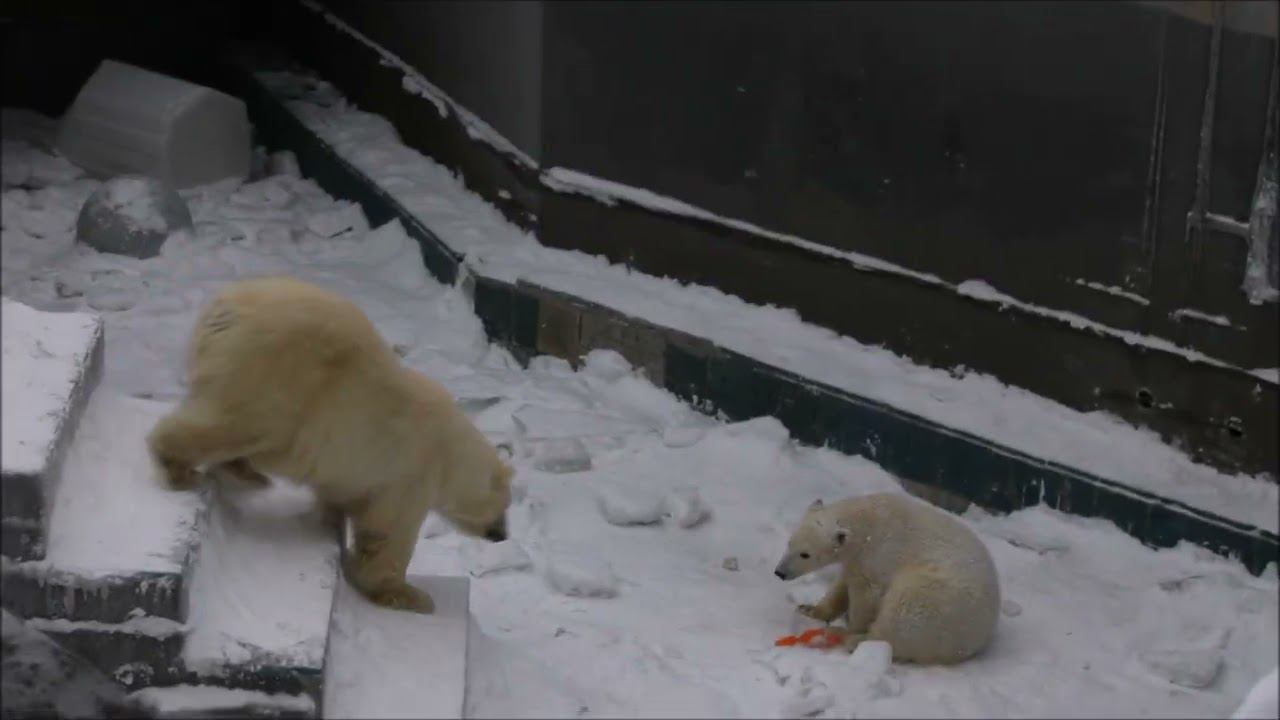 Герда родилась в Москве 20 ноября 2007 года. Её мама Симона, папа Врангель. В Новосибирск переехала 05.08.2008. В 2013 году у Герды и Кая родилась Шилка. В 2015 году она переехала в Японию. В 2015 году родился Ростик. 6 декабря 2018 года он переехал в Китай. В 2018 году родились Норди и Шайна. Сейчас они находятся в нашем зоопарке в закрытой от посетителей хозяйственной зоне. В другие зоопарки их не могут отправить. Сначала была пандемия, сейчас границы закрыты и санкции. Белые медведи Норди и Шайна содержатся в МУП «Новосибирский зоопарк имени Р. А. Шило» с рождения и по настоящее время. Данная пара молодых медведей находится вне экспозиции зоопарка, поэтому посетители не могут их видеть. Передача молодых медведей в другой зоопарк пока не планируется, — ответили на запрос редакции в пресс-центре мэрии Новосибирска. У них есть бассейн, игрушки. Их так же кормят как и раньше. Голодные не бывают. Шайна размером с маму, Норди с папу. Шайна командует Норди. Одиночные животные. Как правило, миролюбивы по отношению друг к другу, но между самцами в брачный период случаются стычки. Взрослые самцы могут нападать на медвежат. Гон с марта по июнь. Продолжительность жизни — максимум 25—30 лет; в неволе рекорд долгожительства — 42 года. Вес очень крупных самцов в некоторых частях ареала 700 и даже 800 кг: есть данные о зверях весом до 1000 кг. Обычно вес меньше. Самки всегда не только меньше, но и значительно легче самцов. Так, самцы в восточной Гренландии в состоянии нормальной упитанности весят 400—450 кг, хорошо упитанные — до 500 кг, самки, даже очень сытые, здесь же редко весят больше 350—380 кг, т. е. их вес составляет около 75% веса самцов. Длина тела на 3-й день после рождения 28—32 см, средний вес — около 755 г (650—840 г). На 26-й день длина тела увеличивается незначительно — до 35—38 см, а вес возрастает до 1125—1275 г. В возрасте 60 дней самцы весят около 7 кг, самки — около 6 кг при длине тела у первых 58—60 см, у вторых 54—58 см. В возрасте 4 месяца медвежата достигают веса 22—23 кг, в 6-месячном возрасте при длине около 110 см — 40—43 кг, в 8-месячном — 58—62 кг. Длина тела в возрасте с 6 до 9 месяцев нарастает по 6—7 см в месяц. Во время зимнего сна рост почти прекращается. В зоопарке медведей кормят утром морской рыбой, хлеб с рыбьим жиром внутри, морковь, яблоки, морская капуста, яйцо дают сырое. Медвежат подкармливают молоком из соски. На ужин мясо (говядина, конина, куры или индейка). Летом и осенью арбузы, дыни, ранетки, кабачки, тыквы, огурцы. Когда показательное кормление летом бросают живую рыбу. Медвежата с медведицей находятся до 2-х лет. 16 декабря 2022 года Герда родила 2-х медвежат. И это две девочки! Имена дали 25 июня. Медвежат зовут Стрелка и Белка. Обзор вольеров белых медведей https://www.youtube.com/watch?v=mAt_b7JD0B4&list=PLGvf0V-rAHxkpGKJaWIZIUxRKgKiqV3xZ&index=17&t=0s