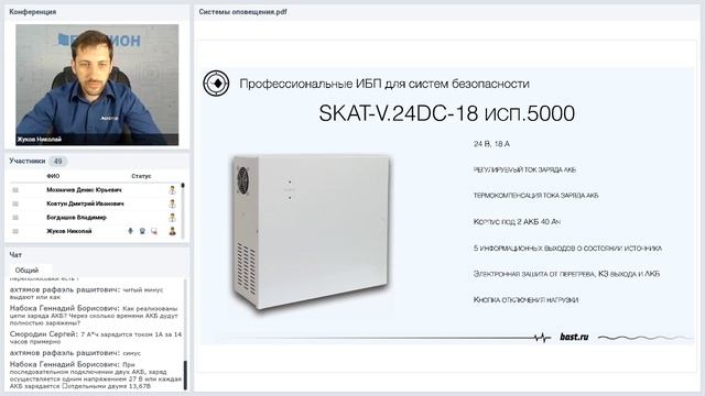 Вебинар “Источники бесперебойного питания для систем оповещения” Согласно статистике работы систем оповещения, большую часть времени оборудование работает в режиме ожидания. Однако, при переключении в режим вещания ток, потребляемый оборудованием, вырастает в несколько раз. Эта особенность была учтена при разработке линейки SKAT-RPA - источников бесперебойного питания для систем оповещения. Применение аккумуляторной батареи в качестве буфера позволило создать источник питания доступный по цене и при этом обладающий высокой надежностью, способный кратковременно выдавать максимальный ток в резервном режиме в несколько раз превышающий ток номинальный. Такая схема питания нагрузки актуальна для систем речевого оповещения, радиосвязи, мини-АТС, а также находит применение в охранно-пожарных сигнализациях и системах видеонаблюдения. Программа вебинара 1. О компании «Бастион» 2. Параметры подбора ИБП для систем оповещения 3. Профессиональные источники бесперебойного питания для систем безопасности серии «СКАТ» 4. ИБП серии RACK 5. ИБП серии RPA 6. Гарантии и техническая поддержка 7. Розыгрыш призов Лектор - руководитель Учебного цента компании "Бастион" Жуков Николай ИБП "БАСТИОН" в Каталоге "ТД ТИНКО": https://www.tinko.ru/brands/bastion/
