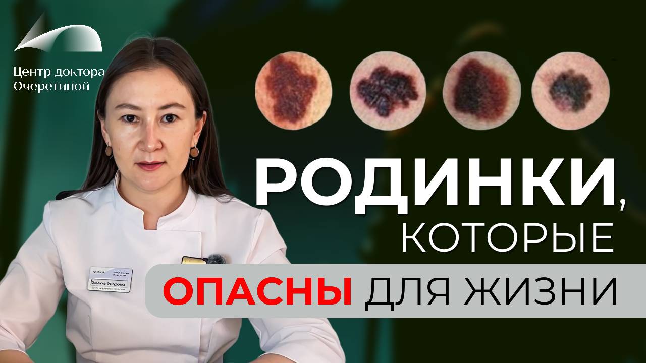 Чем опасны родинки и как вовремя обнаружить появление злокачественных образований? Расскажет Гумерова Эльвина Фануровна — Врач травматолог-ортопед Центра доктора Очеретиной (г. Казань). Имеются противопоказания, необходима консультация специалиста. __________________________________ #здоровье #онкология #боль #меланома __________________________________ БОЛЬШЕ ПОЛЕЗНОЙ ИНФОРМАЦИИ Сайт сети клиник «Центра доктора Очеретиной» https://ocheretina.ru Бесплатная консультация по МРТ https://ocheretina.ru/consultation/ Написать лично Ирине Геннадьевне: Одноклассники https://ok.ru/ocheretina ВКонтакте https://vk.com/irina_ocheretina Телеграмм https://t.me/budem_zdorovimi ___________________________________ 📱 Телефон для записи на прием 8-800-555-10-42 (по России бесплатно) Наши клиники: ЦЕНТР ДОКТОРА ОЧЕРЕТИНОЙ: ✅ г. Москва, Брюсов переулок, д. 2/14, стр. 1 ✅ г. Москва, Островитянова, д. 6 ☎ общий тел: +7 (495) 646-11-71 ✅ г. Санкт-Петербург, Васильевский Остров, Беринга, д. 1 ☎ тел.: +7 (812) 220-10-11 ЦЕНТРЫ ВОССТАНОВИТЕЛЬНОЙ ТРАВМАТОЛОГИИ И ОРТОПЕДИИ «АРИАДНА»: ✅ г. Казань, ул. Агрономическая, д. 18 ✅ г. Казань, ул. Чистопольская 20А ☎ тел: +7 (843) 500-60-07 ✅ г. Тюмень, ул. Герцена д. 82, корп. 1 ✅ г. Тюмень, ул. Николая Зелинского, д. 24 ☎ общий тел: +7 (3452) 56-85-08 ✅ г. Курган, ул. Бурова-Петрова, д 120, стр. 1 ☎ тел.: +7 (3522) 555-888