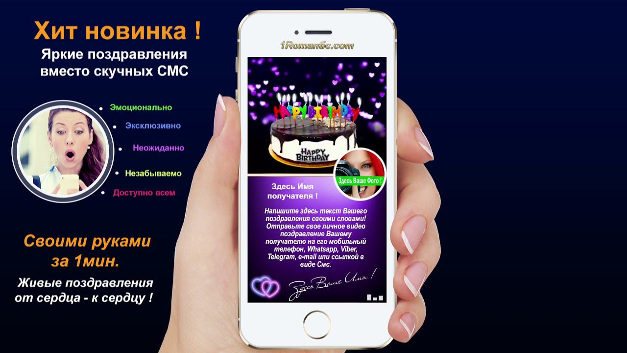 ЗАПОЛНИТЬ ЭТУ ОТКРЫТКУ СЕЙЧАС: https://1romantic.com/musicalnye-pozdravleniya/chudesa/ Дорогие друзья! Вам остаётся только, написать нужный вам текст и загрузить свою фотографию. 1Romantic.com Является первым и единственным в мире сервисом интерактивных видео поздравлений. Мы используем собственную уникальную технологию, добавляя ежедневно самые новые и последние разработки программирования. У нас Вы можете найти поздравления на любой вкус, только высокого качества и разрешения. Согласитесь, всегда приятней, отправить поздравления от себя лично, чем пересылать чужие, с уже заготовленным стандартным и быстро мерцающим текстом, как рекламный баннер, пересылаемый друг-другу от тысячи к тысячам где нет Ваших Имён. Задумайтесь ! Это выглядит слишком наивно и как минимум глупо, особенно для людей которые умеют писать и читать (на мою розочку сверкалку или стикер и отвали). Теперь всё будет иначе ! Вы можете сами передать своё настроение, тем людям, которым Вы будете адресовать своё поздравление. Теперь Вы сами, творец, художник и поэт своих чувств, наполняя видео открытку своими словами, излучая только самое доброе, искреннее из своих тёплых сердец. Загрузить свою любимую фотографию или фотографию получателя, что безусловно, будет гораздо приятней и неожиданней для него) Безусловно, мы подумали и о музыкальном оформление. Наверняка, Вы будете подбирать нужные слова и фотографию под ту песню, которую Вы захотите загрузить сами, а не ту которую Вам навязывают. Ну и самое главное, Вы можете использовать функцию добавления своего голоса, программа сама наложит Ваш голос на начало загруженной песни. Поверьте это очень оригинально, особенно если Ваш друг не слышал Вас долгие годы. Такое поздравление можно сделать действительно за 30-60 сек. Но если Вы творческий человек, оно не отпустит Вас так быстро))) И Вы будете думать, сочинять, плакать, улыбаться, восхищаться, раскрыв в себе новые таланты... возможно это станет Вашим первым собственноручным творением . Удачи Вам ! С уважением, Ваши Романтики ! Краткий список предлагаемых нами поздравлений... Поздравления с днем рождения женщине. Поздравления с днем рождения мужчине. Поздравления с днем рождения другу. Поздравления с днем рождения подруге. Поздравления с днем рождения для детей. Поздравления с днем святого Валентина. Поздравления Папе. Поздравления с днем рождения Маме. Прикольные поздравления. Видео поздравления с днем рождения. Музыкальные поздравления с днем рождения. Слайд-шоу с днем рождения. и многое-многое другое.