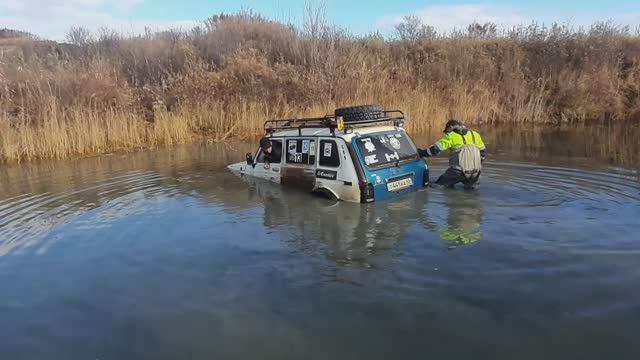 Нива брод.почти проехали, полный салон воды