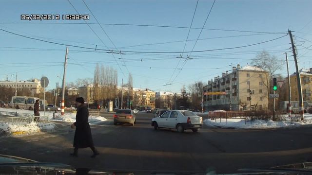 Считаем нарушения: поехал на желтый, не дал бабуле закончить переход, при всем при этом двигается по встречке, обгоняет на регулируемом перекрестке, расшугал поворачивающих налево. Улица Дружбы, Нижний Новгород.