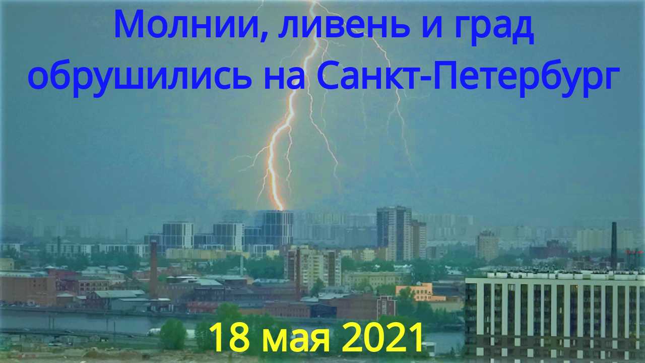 Молнии, ливень и град обрушились на Санкт-Петербург вечером 18 мая 2021 после жары. После недели нетипичной для мая-месяца жары, в Санкт-Петербурге вечером 18 мая прошли ливень, град, гроза с молниями и громом. Как это было, смотрите в видео.