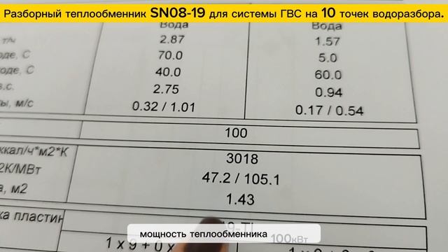 Теплообменник SN08-19 - 100 кВт для системы ГВС. На 10 точек водоразбора, 1570 л/час.