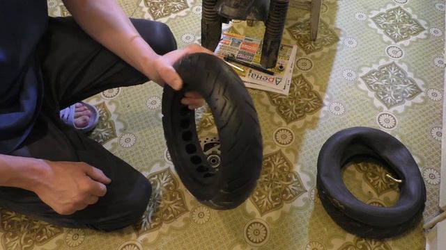 Как установить литую покрышку на переднее колесо на электросамокате