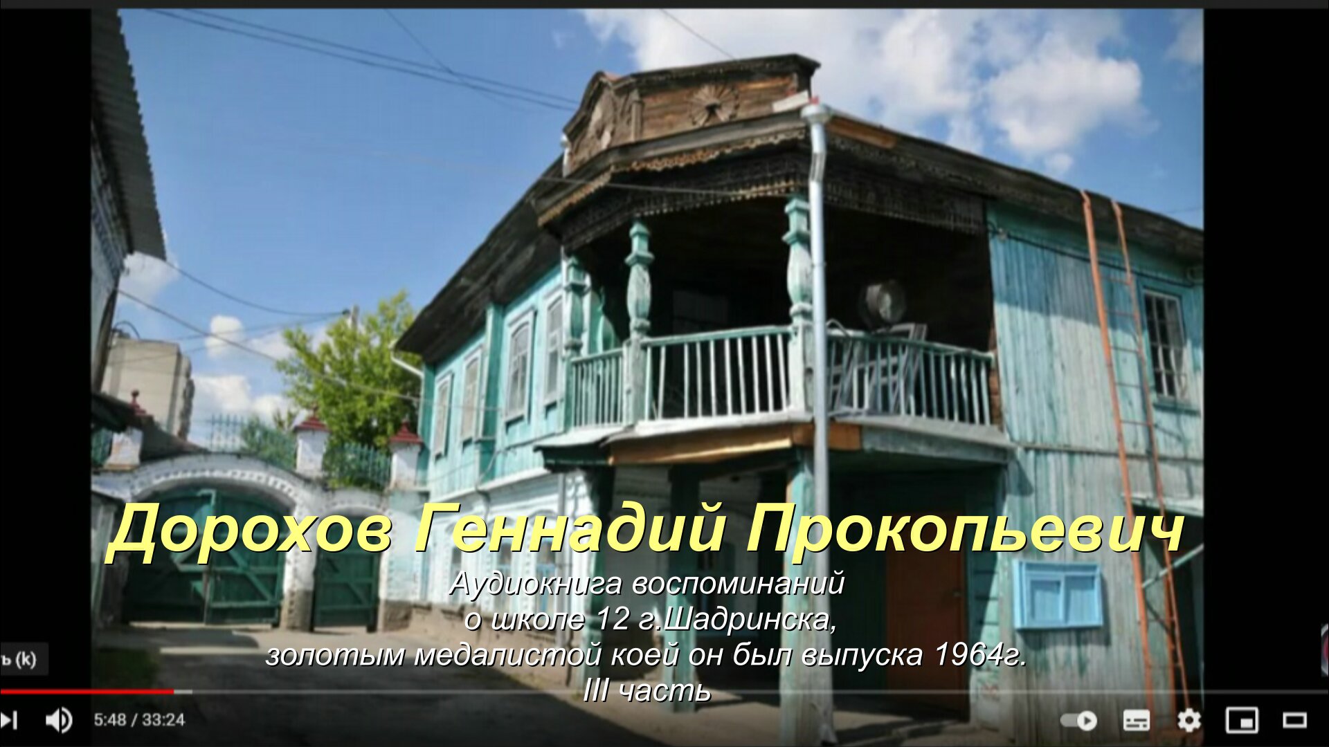 2013г. Г П. Дорохов, воспоминания 3часть. Геннадий учился в школе 12 г.Шадринска в 1953-64г.г. Окончил школу с золотой медалью. Опубликованные 1 и 2 части. https://rutube.ru/video/d5df89c669eb5fc590fbd337328ed24f/ https://rutube.ru/video/c4e3d62cdcf74edc05e024e29de8aae4/ #засечки#луафасра#КолмогоровГеннадий
