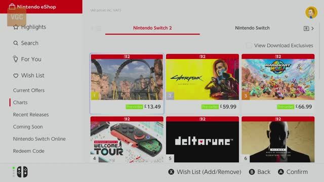 Switch 2 eShop — обновленный магазин Nintendo (VGC)