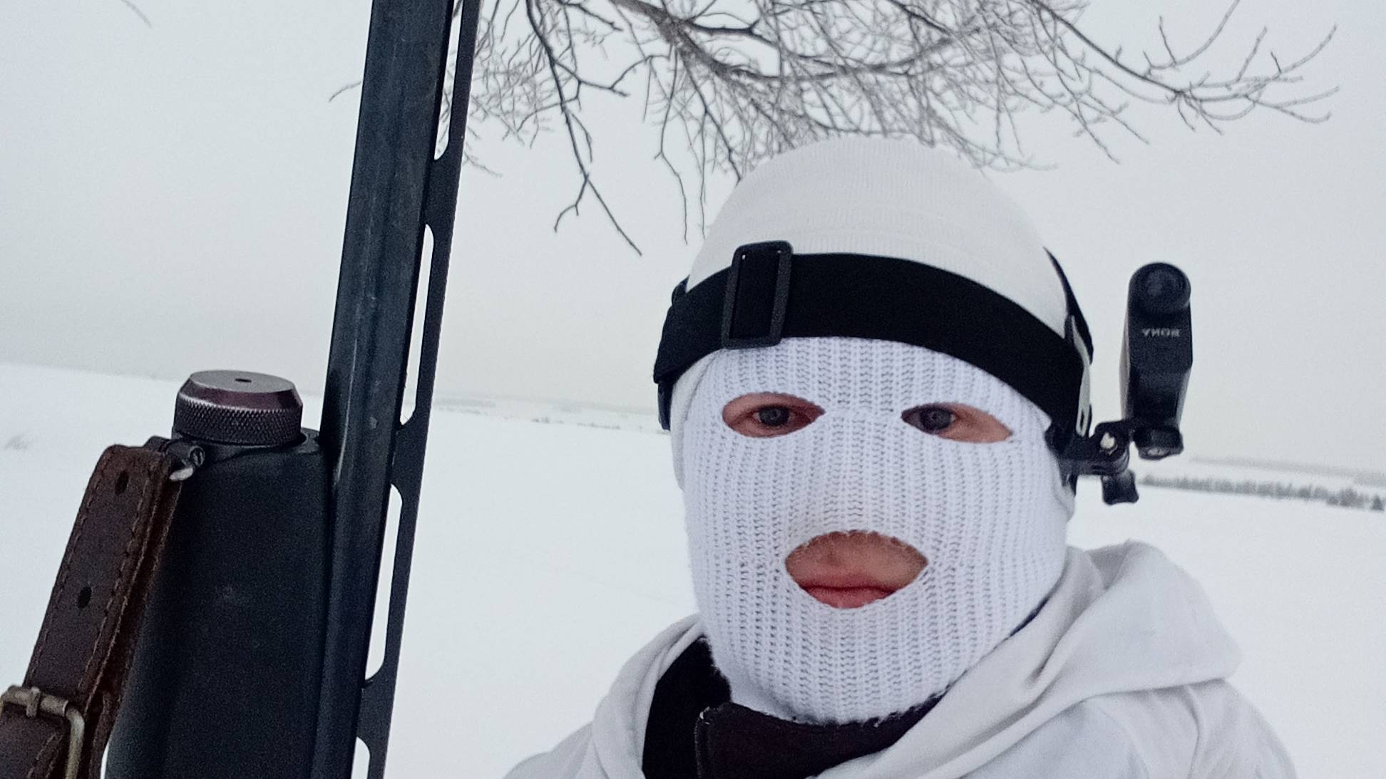 Очередной выход за хитрой плутовкой. Вышли с МР 155 ой, патроны с дробью номер 1,0. Обходим большой участок на лыжах.