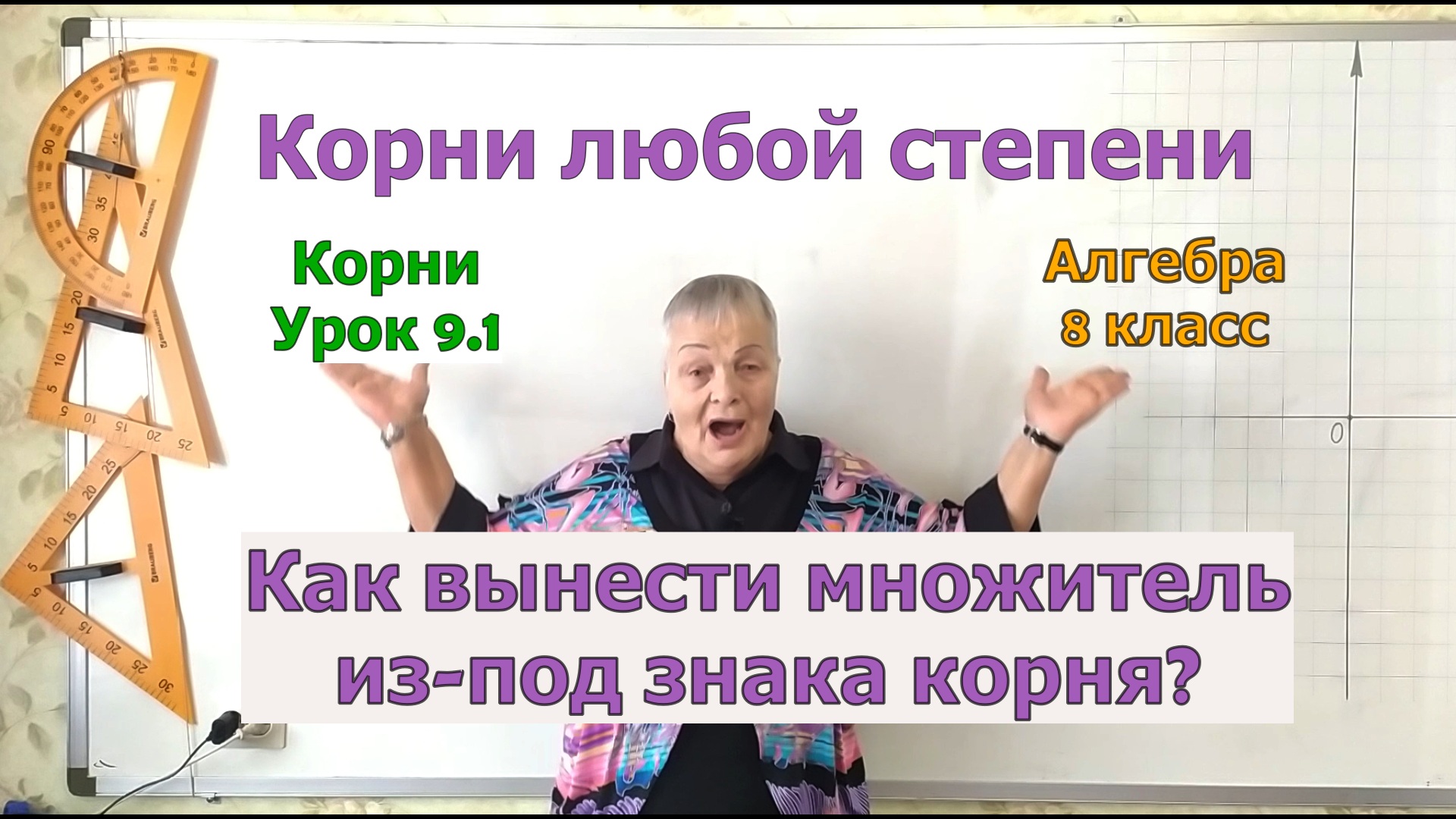 Алгебра 8 класс. Как выносить множитель из-под знака корня, если Вы знаете таблицу умножения до ста? Какое свойство корней применяется в этом случае? Сегодня мы ответим на эти вопросы. Если Вы не видели наши предыдущие уроки по теме «Извлечение корней», то обязательно посмотрите их, тогда этот урок будет Вам очень понятен. Вначале мы познакомим Вас с первым свойством корней, которое получилось из умножения корней. Это свойство поможет Вам находить значения некоторых иррациональных чисел и упрощать выражения некоторых корней. Мы научим Вас применять это свойство корней на конкретных примерах. Научим Вас выносить множитель из-под знака корня, поясним, что это за операция. Дадим Вам правило вынесения множителя из-под знака корня. Отработаем это правило на конкретных примерах. Обратим Ваше внимание на примеры, которые Вы в дальнейшем должны будете делать устно. Дадим Вам подсказки, которые помогут Вам это запомнить. Это поможет Вам не допускать ошибок в упрощении выражений в старших классах. Подробный план урока и ссылки на предыдущие уроки Вы можете найти в описании под видео. 00:00 Начало видео. 00:33 Первое свойство корней: √(xy) =√x√y. 01:56 Научимся применять это свойство на практике. 06:28 Применение этого свойства в упрощении выражений. 09:45 Что нужно сделать, чтобы вынести множитель из-под знака корня? 11:19 Отработаем это правило на примерах. 14:00 Эти примеры Вы должны решать устно! 18:59 Заключение и анонс следующего урока. Если Вы впервые на нашем канале или не смотрели предыдущие уроки, то рекомендуем Вам посмотреть следующие видео: Умножение корней. Извлечение корня. Урок 8. Алгебра 8 класс. https://rutube.ru/video/a23e39a58d4ac573a02700bfb197371e/ Определения квадратного, кубического, корня n степени. Компоненты корня. Чтение и запись корней. Извлечение корня. Урок 2. Алгебра 8 класс. https://rutube.ru/video/a1f135d897a31e096d939bdbf95588ba/ Сложение и вычитание корней. Извлечение корня. Урок 7. Алгебра 8 класс. https://rutube.ru/video/c7238d8e55bb18583efbe2917dc85344/ Область допустимых значений квадратного корня. Извлечение корня. Урок 6. Алгебра 8 класс. https://rutube.ru/video/b59a05c53dcbe8b7378a980b30ac93e5/ #вынесениемножителяиз-подзнакакорня #вынесениемножителяизподкорня #вынесениемножителяизподзнакакорня #упрощениевыраженийскорнями #упрощениевыраженийсквадратнымикорнями #свойстваквадратногокорня8 #свойствакорняалгебра8 #алгебрасвойстваарифметическогоквадратногокорня #извлечениекорня8класс #алгебра8класс #МатематикаОтБаканчиковой вынесение множителя из-под знака корня, вынесение множителя из под корня, вынесение множителя из под знака корня, упрощение выражений с корнями, упрощение выражений с квадратными корнями, свойства квадратного корня 8, свойства корня алгебра 8, алгебра свойства арифметического квадратного корня