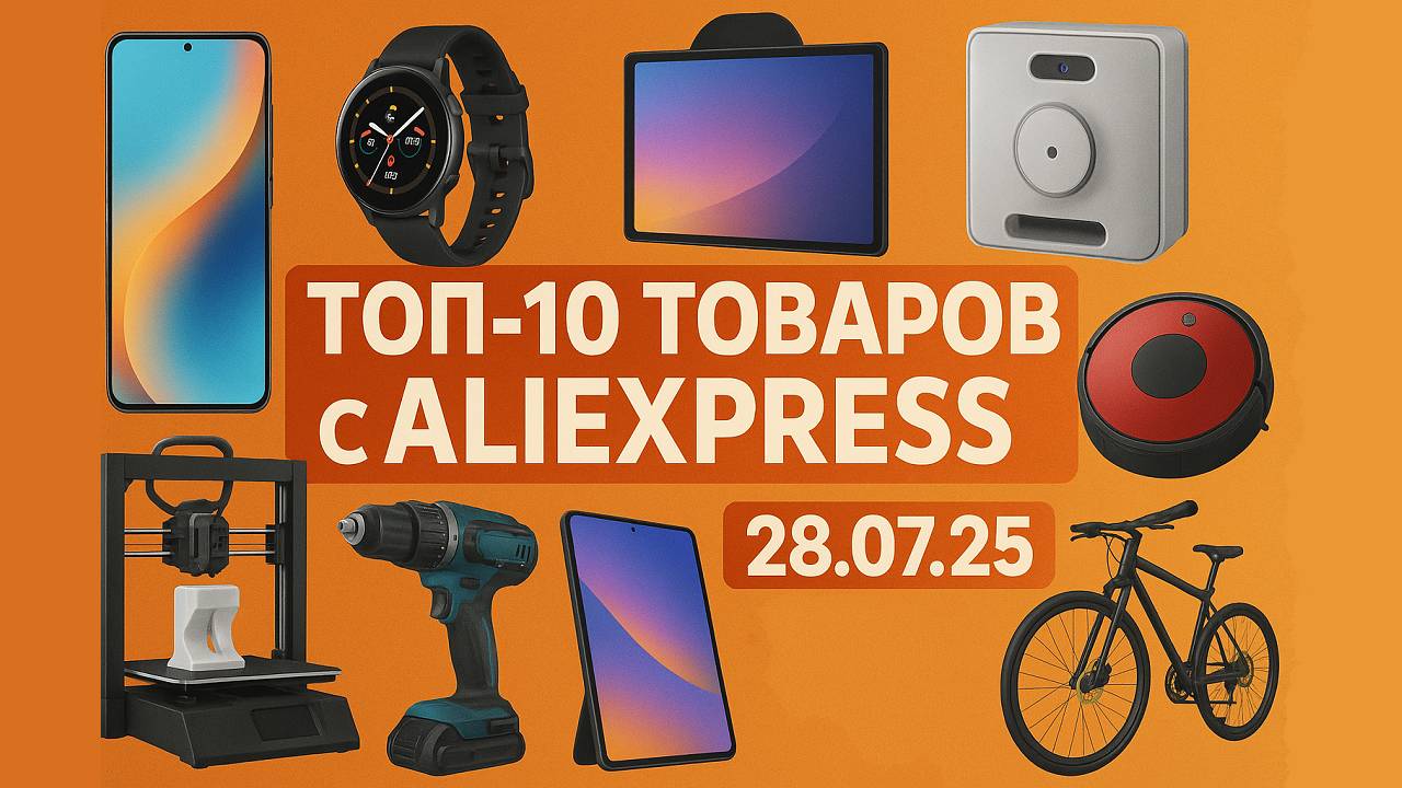 Привет! Рассмотрим ТОП-10 товаров с Алиэкспресс на 28 июля 2025 года. Только реальные скидки. Ссылки на сайте https://top10ali.ru и в канале https://t.me/top10ali_ru 📱 Смартфон Xiaomi Redmi Note 14 4G Global ⌚️ Смарт-часы Amazfit T-Rex 3 🧼 Робот-мойщик окон Robot lifestyle 📱 Смартфон HONOR 400 Lite Global 🤖 Робот-пылесос Dreame X40 Ultra 🖥 Портативный монитор HOESD.a 15.6" IPS 📱 Планшет Xiaomi Redmi Pad SE 🖨 3D-принтер Qidi Tech Q1 Pro 🔧 Ударная дрель DEKO DKID13XL65G 🚲 Велосипед MINGDI 29"