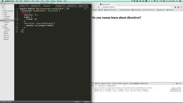 AngularJS Directives don't have to be complicated! This quick tutorial will help you learn how to make an Angular directive in no time. Angular.js is a powerful MV* Javascript framework for building single-page javascript applications. If you haven't used it before, check out my introduction video tutorial on Angular.js here! https://www.youtube.com/watch?v=QETUuZ27N0w -~-~~-~~~-~~-~- Also watch: "Responsive Design Tutorial - Tips for making web sites look great on any device" https://www.youtube.com/watch?v=fgOO9YUFlGI -~-~~-~~~-~~-~-