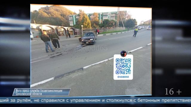 19.09.2025 В Холмске «Кроун» налетел на бордюр, когда пытался скрыться от сотрудников полиции