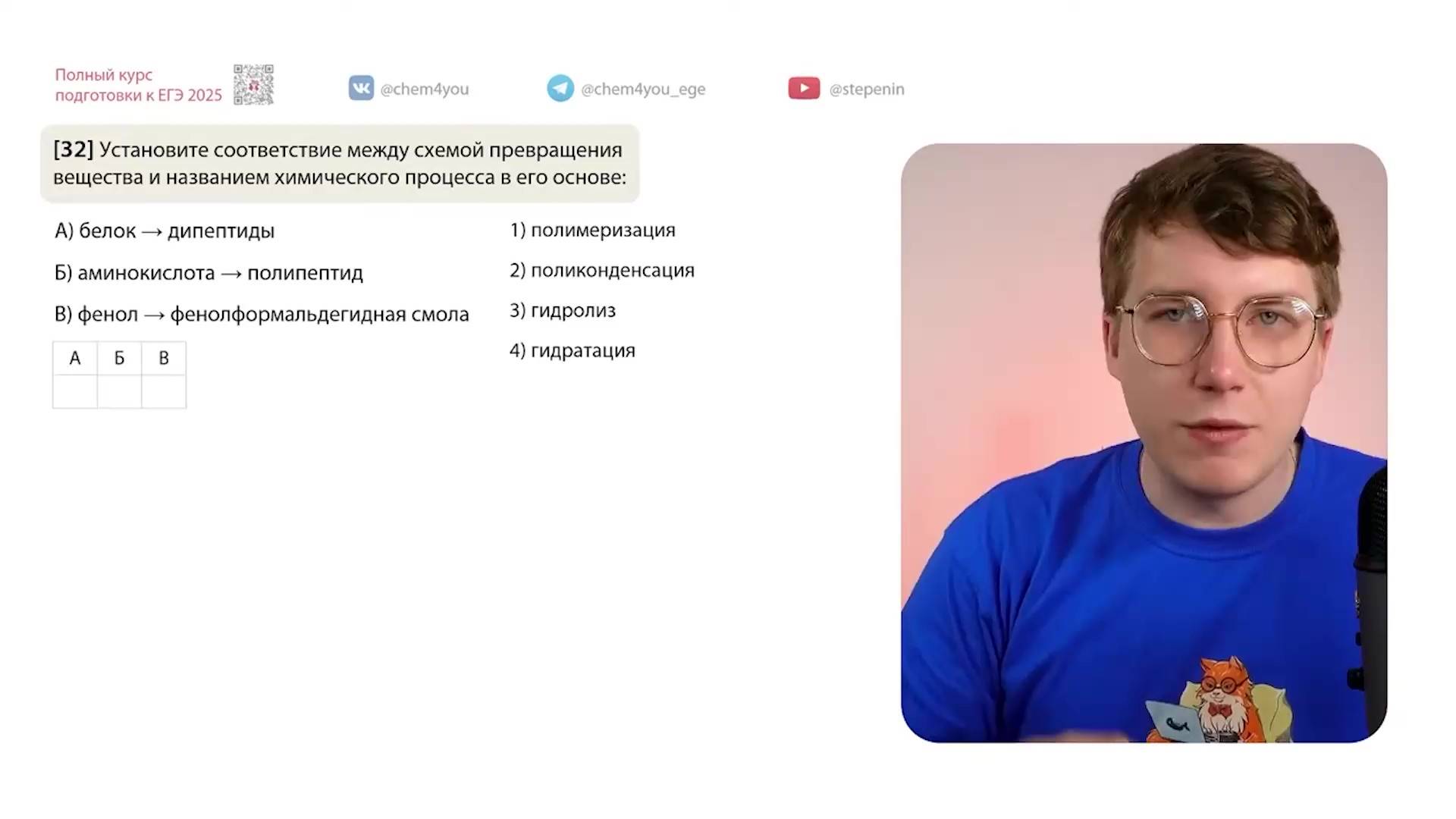 🧪 Подготовка к ЕГЭ по химии на самые высокие баллы на наших курсах: http://stepenin.ru Телефон Андрея Степенина: +7 926 625-73-33 📚 Много полезного образовательного контента на наших площадках База заданий (огромная): http://stepenin.ru/tasks Группа Химического кота (ЕГЭ по химии): https://vk.com/chem4you Группа для 10 класса: https://vk.com/stepenin10 Группа 9 класса: https://vk.com/chem4you_oge Группа ЕГЭ по биологии: https://vk.com/bio4yo