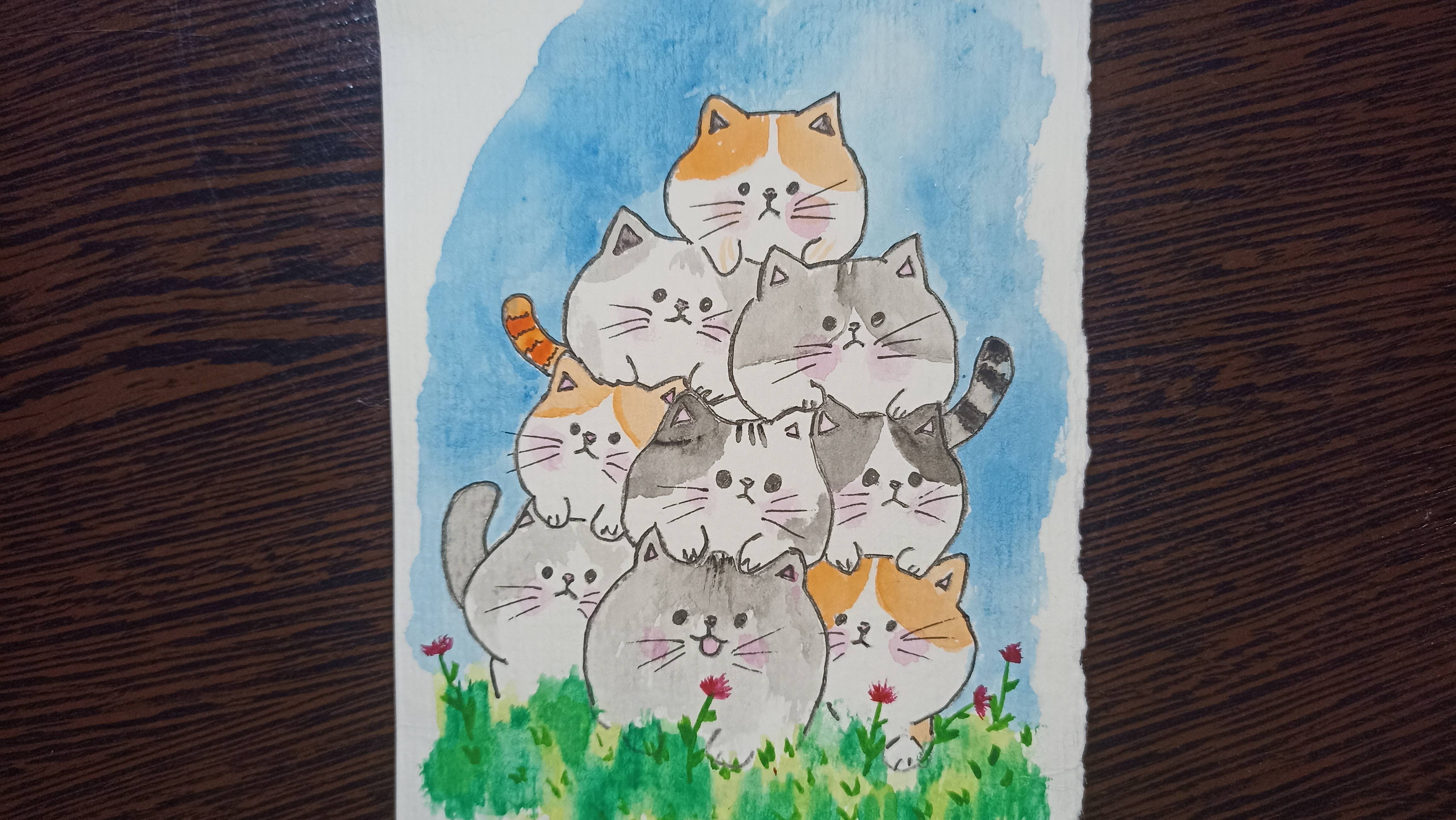Рисунок акварелью / Горка из котиков