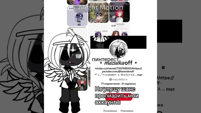 привет! заинтересовала своим творчеством? тогда тебе точно на мой канал! рисую на заказ за пиар либо же бесплатно:3 не ведитесь на фейков !!! с уважением Лаванда Мой рутуб-https://rutube.ru/channel/71227639 Мой ютуб-https://youtube.com/@lavanderoff?si=3s3ZlJNB31jDqSCh Мой пинтерест-https://pin.it/79zxwCxRR Мой лайк-https://l.likee.video/p/7Xdavh