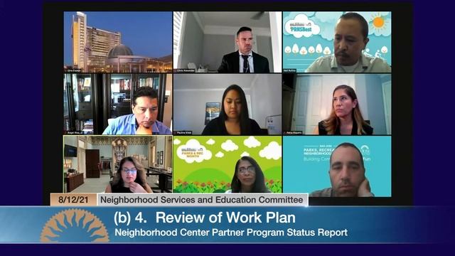 City of San José, California Neighborhood Services & Education Committee of August 12, 2021. Pre-meeting citizen input on Agenda via eComment at https://sanjose.granicusideas.com/meetings. This public meeting will be conducted via Zoom Webinar. For information on public participation via Zoom, please refer to the linked meeting agenda below. Agenda pending