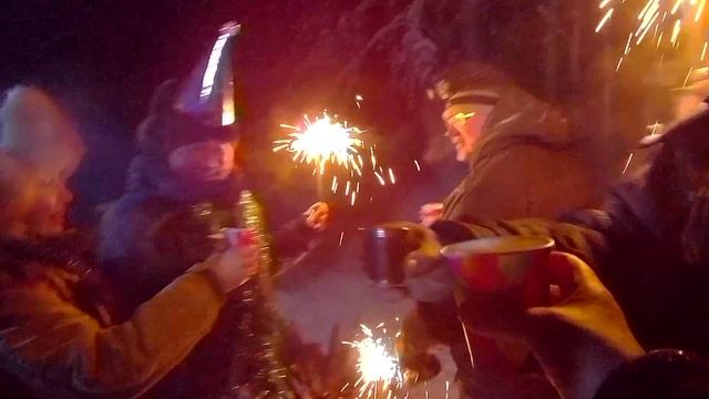 Едем в лес на мотобуксировщиках. Встречать новый год в хорошей и веселой компании . Всех с наступающим новым годом! Салют.