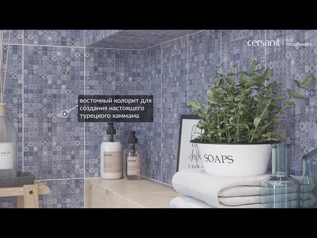 Восточные узоры рельефной плитки и теплые природные цвета - синонимы коллекции HAMMAM BROWN (ХАММАМ БРАУН) в коричневом цвете. Рельефная поверхность делает пространство динамичным, а декоративные орнаменты добавляют восточного колорита интерьеру. Турецкий хаммам - мечта всех любителей СПА-процедур, банных ритуалов и морских курортов воплощена в новой коллекции HAMMAM BLUE (ХАММАМ БЛЮ). Сочетание рельефной поверхности "под мозаику" белого и синего цвета и оригинального орнамента создают в ванной комнате ощущение спокойствия и гармонии. Коллекция HAMMAM - https://cersanit.ru/catalog/2d/collections/hammam_1/.