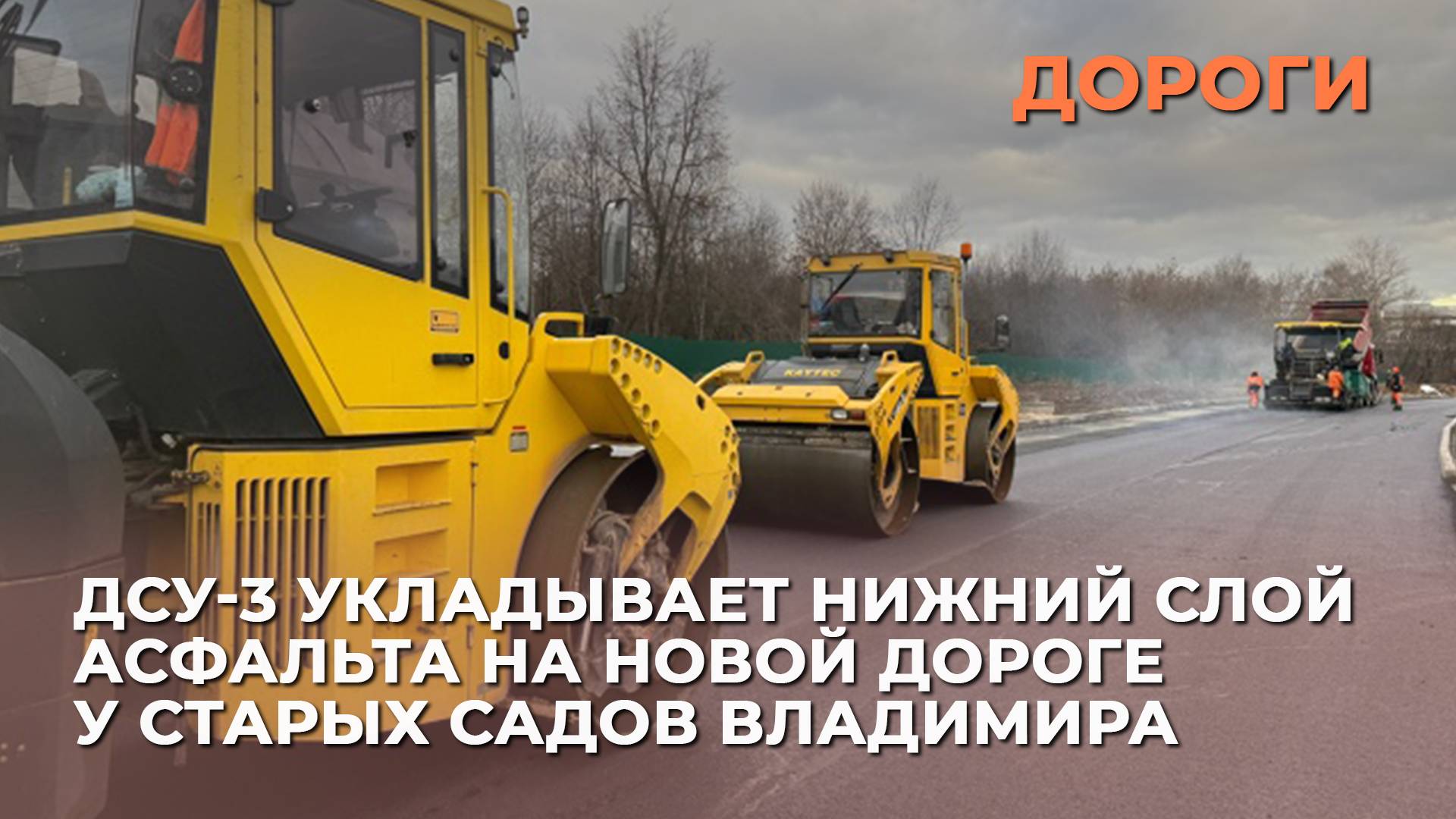 ДСУ-3 укладывает нижний слой асфальта на новой дороге у Старых садов Владимира