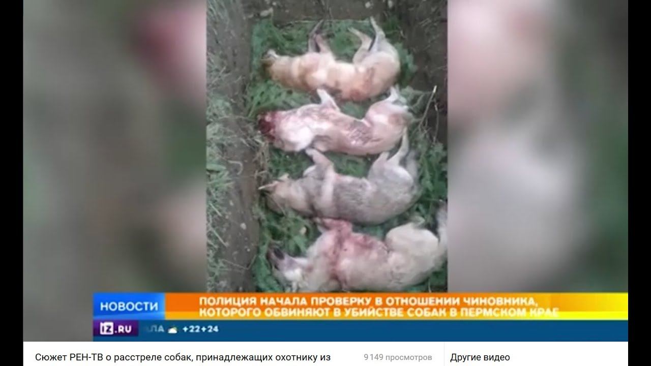 Сюжет РЕН-ТВ о расстреле собак, принадлежащих охотнику из Лысьвы