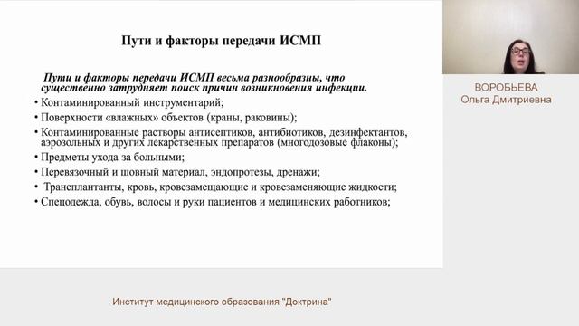 Воробьева О.Д. Профилактика ИСМП понятие, источники, пути и механизмы передачи
