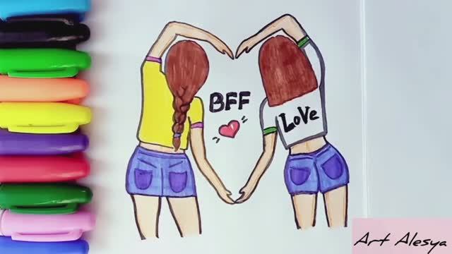 Как нарисовать лучших подруг или сестричек❤️