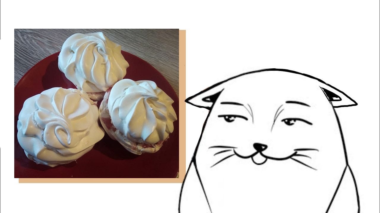 Рецепт: 1) 2 белка 2) 250 гр. сахарной пудры 3) 3 ч. ложки крахмала 4) 1/4 ч. ложки лимоного сока 5) клубничный джем или любой другой Выпекать при 100 градусах, 1,5 часа. Дать полностью остыть.