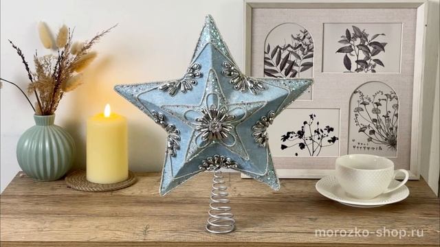 Верхушка на ёлку ЗВЕЗДА серебряно-голубая, 34 см, S4331