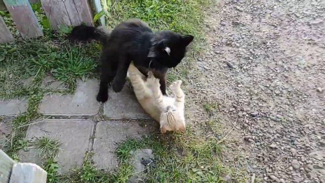 Чернухе надоело смотреть как рыжий оболтус скачет 😻 кот воспитывает котёнка