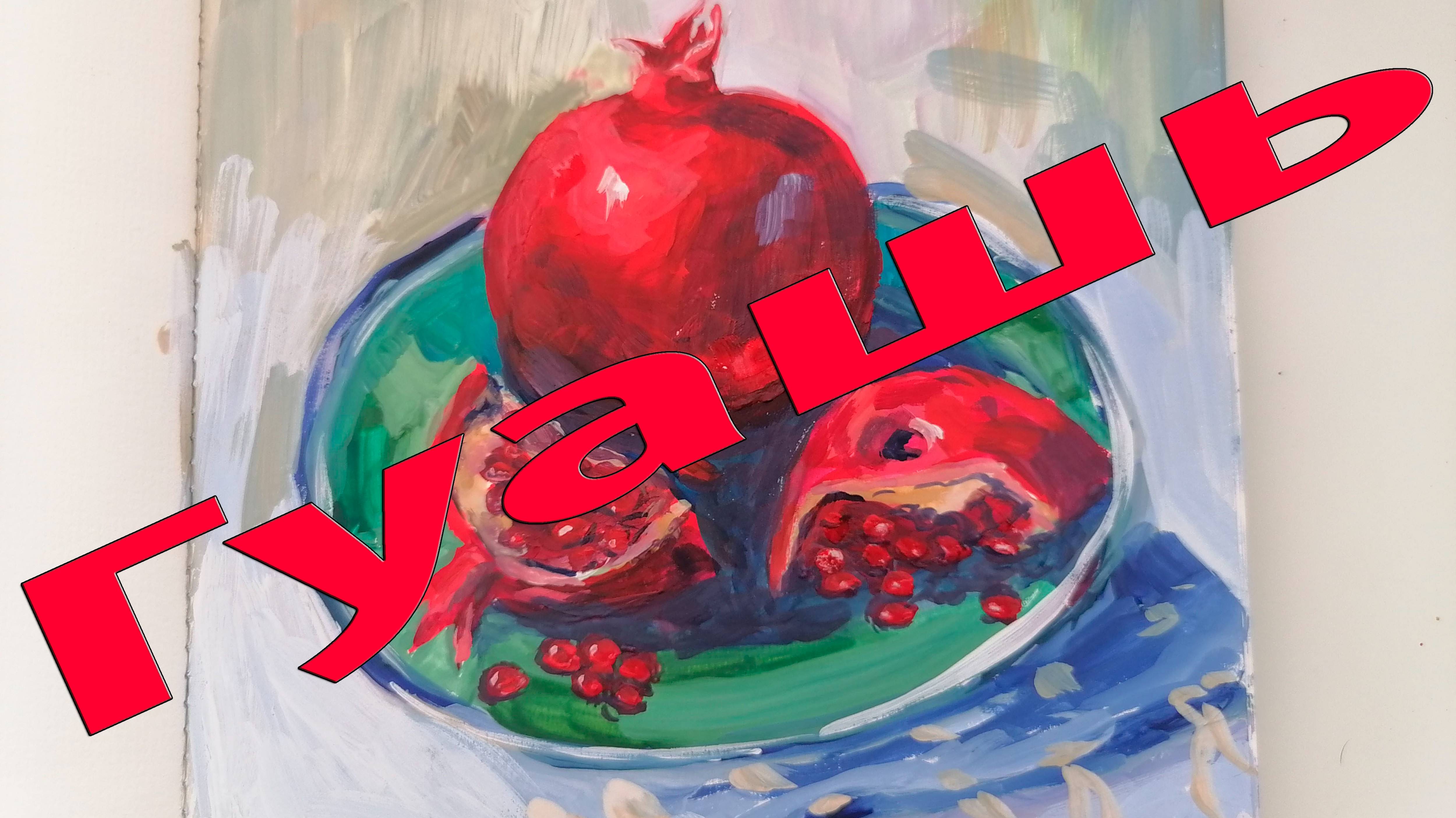 #СезонконтентаRUTUBE ! Живописный натюрморт. Гуашь. Гранат. Живопись для начинающих.