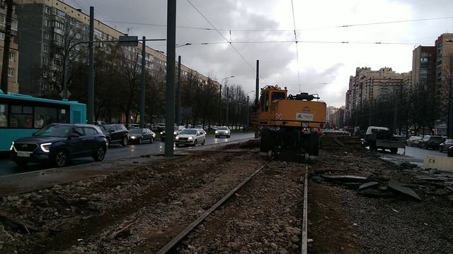 И снова это чудо техники для ремонта трамвайных путей в работе