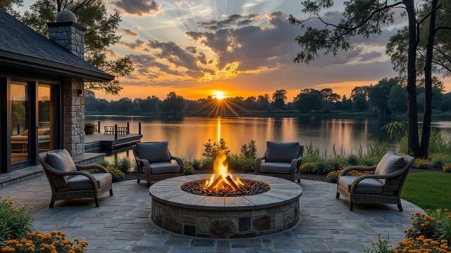 ✨ ASMR Звуки Камина на Закате Атмосфера Дворика у Озера Птицы Сверчки ✨ #камин #закат #атмосфера #дворик #озеро #птицы #сверчки #расслабление #помощьдлясна