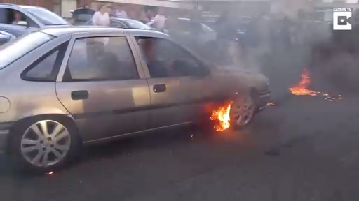 Парень решил немного подымить своей резиной, но в итоге загорелось не только колесо... #шина #колесо #огонь