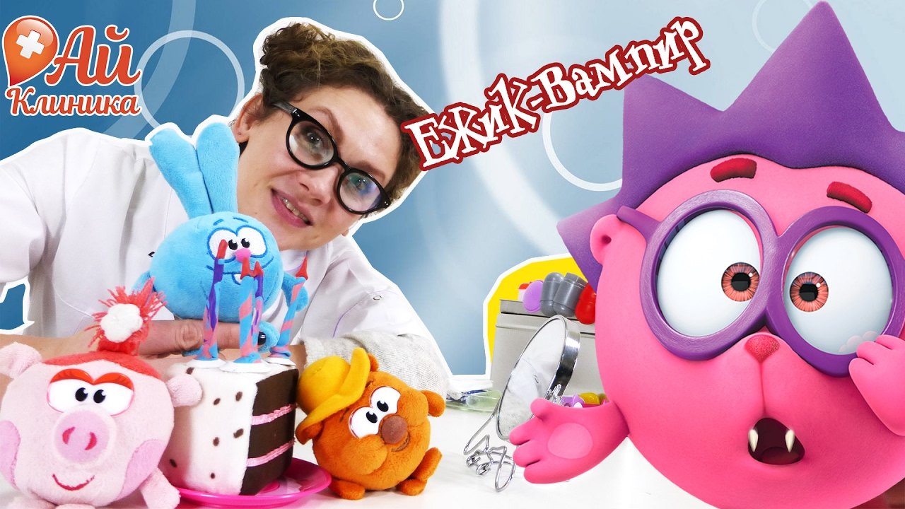 ЁЖИК сегодня празднует День Рождения! СМЕШАРИКИ принесли ему торт со свечками, чтобы он загадал желание! Только вот сразу после того, как он задул свечи, у него появились огромные зубы! Неужели Ёжик стал вампиром?! КОПАТЫЧ, НЮША и КРОШ решили срочно заманить его в АЙ КЛИНИКУ - ДОКТОР АЙ точно разберётся с этой проблемой! Смотри наше новое видео для детей, чтобы узнать, что будет дальше! Не забудь подписаться на самую лучшую клинику для игрушек - Ай-Клиника! https://www.youtube.com/channel/UCGniralnly1KvmlBMjGEVLA/?sub_confirmation=1 Не забудь подписаться на канал СТРАНА ДЕВЧОНОК, чтобы следить за новыми приключениями! https://www.youtube.com/channel/UCCe6oRAVWZFztZJMAujRu7A/?sub_confirmation=1 На этом канале живут наши лучшие подружки - Бантики Косички! https://www.youtube.com/channel/UCZJi3695pl6tfkAHp4BLMDA/?sub_confirmation=1 Смотри ещё больше весёлых видео на канале Как Лев Рычит? https://www.youtube.com/channel/UCbo90O9ypUVO7FnfXEjGqEg/?sub_confirmation=1 Заходи к нам на сайт: http://www.4screens.ru/ Ищи нас в социальных сетях! ВКонтакте: https://vk.com/club132423271 Фейсбук: https://www.facebook.com/4ScreensShow Твиттер: https://twitter.com/4Screens_Studio Инстаграм: https://www.instagram.com/4screensstudio/