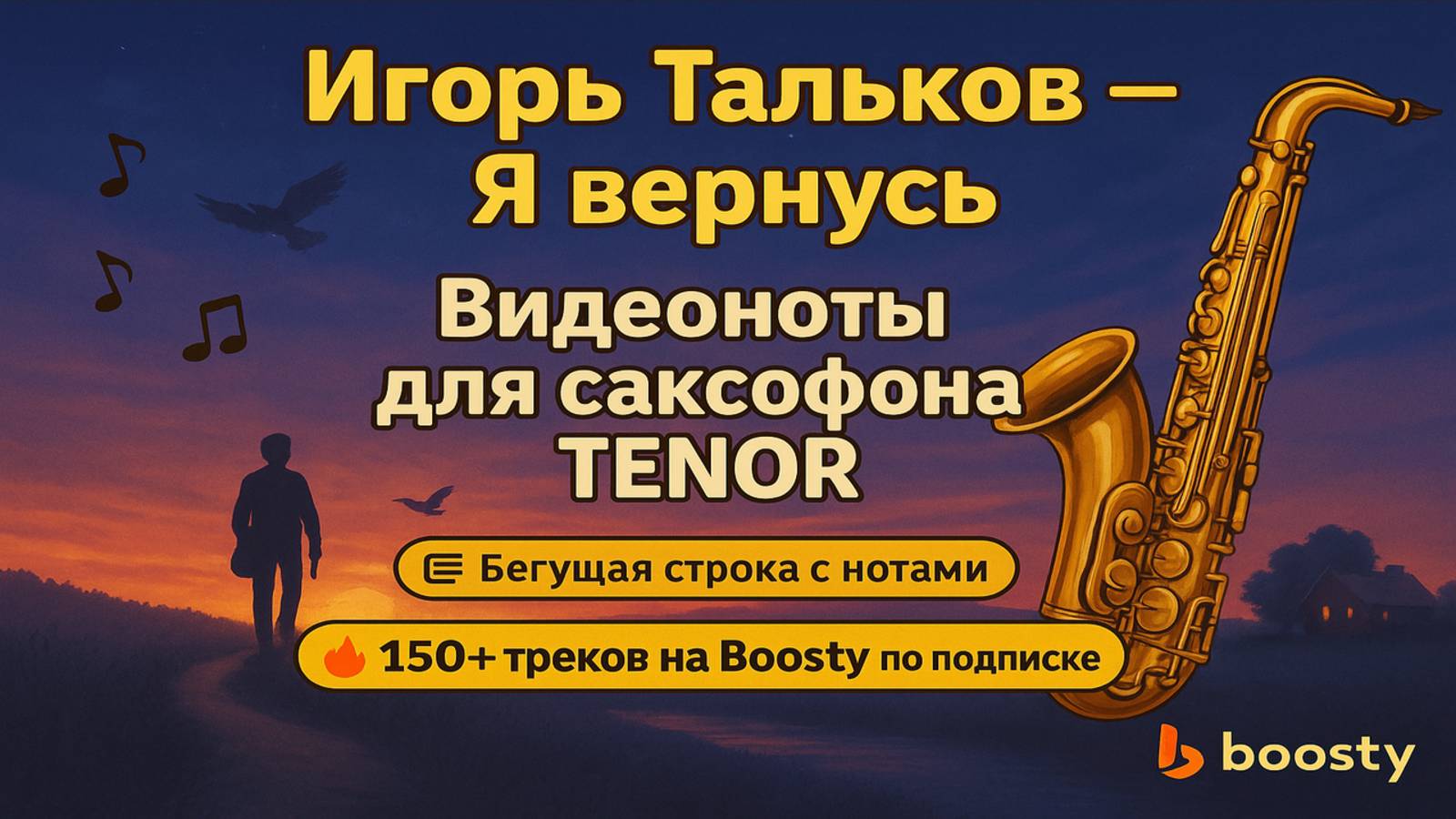 🎷Видеоноты для тенор-саксофона — Я вернусь Игорь Тальков ВИДЕОНОТЫ для Саксофона Смотри на экран, играй вместе со мной под минус! 📄 Ноты в PDF и 🎧 минус доступны по подписке на Boosty: 👉 https://boosty.to/saxlead/posts/4e6ba50b-c868-4eb7-b33a-5c0ea9e42f4d?share=post_link Поддержи проект и получи доступ ко всем видеонотам и архиву! 🎼 Формат: видеоноты с бегущей строкой 🎷 Инструмент: тенор-саксофон (B) 🎵 Уровень: средний 💬 Подписывайся и предлагай песни в комментариях подписывайся - https://m.vk.com/saxtrack
