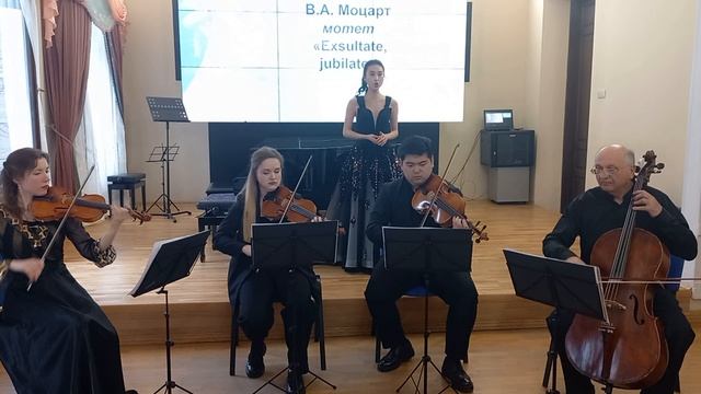 Концерт "Памятные даты", к юбилею В.А. Моцарта (к 270-летию со дня рождения). 2026г.04.03.(1) -Моцарт, ''Alleluia'' из мотета ''Exultate, jubilate'' -поёт Цзясинь Чжан, Ассистент-стажер первого года обучения, класс сольного пения лауреата международных конкурсов, профессора Людмилы Михайловны Косенко. Кафедра академического пения и оперной подготовки им. Николая Николаевича Кириченко, Краснодарского государственного института культуры. Струнный квартет преподавателей КГИК в составе: Жмурин Сергей Николаевич, (виолончель) заведующий кафедрой ОСДУИ, профессор. Перелевская Лилия Константиновна, (скрипка) преподаватель кафедры ОСДУИ. Шумидуб Серафима Вячеславовна, (скрипка) старший преподаватель кафедры ОСДУИ. Пак Геннадий Алексеевич - (скрипка альт) преподаватель кафедры ОСДУИ.