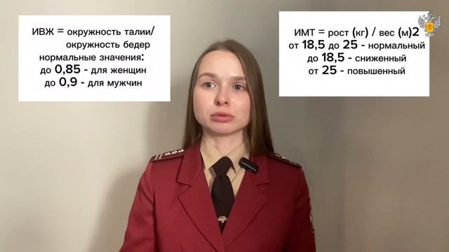 По данным научного исследования, опубликованного в журнале «Lancet» в 2022 году, избыточную массу тела имели 43% взрослого населения по всему земному шару. Ожирение — это комплексное хроническое заболевание, причины которого хорошо изучены, как и меры, необходимые для сдерживания данного кризиса. 🔍 Как оценить состояние своего здоровья? 1. Индекс массы тела (ИМТ): ИМТ = вес (кг) / рост² (м²) • Нормальный вес: 18,5 - 25 • Недостаток: ﹤ 18,5 • Избыточный вес: ﹥ 25 2. Индекс висцерального жира (ИВЖ): Определяет количество жира в области внутренних органов. Формула: окружность талии на уровне пупка / окружность бёдер в самой широкой точке. • Нормальные значения по данным ВОЗ: – Для женщин — менее 0,85 – Для мужчин — менее 0,9 💡 Что делать для предупреждения лишнего веса и ожирения? • Корректируйте свой рацион в соответствии с принципами здорового питания. • Снижайте потребление насыщенных жиров и добавленных сахаров. • Ограничивайте продукты с высокой калорийностью: чипсы, конфеты, сладкие газированные напитки, алкоголь. • Увеличьте потребление клетчатки из овощей, фруктов и цельнозерновых продуктов. • Увеличьте время физических нагрузок. Заботьтесь о своем здоровье и здоровье близких! #Роспотребнадзор_Югра #ДеньБорьбыСОжирением #Здоровье