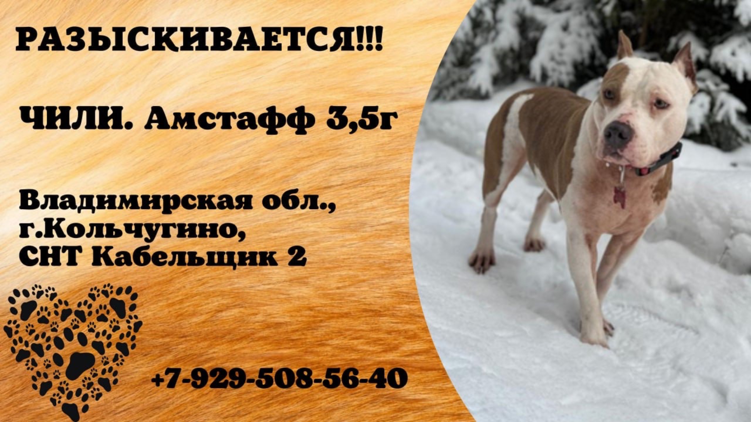 Пропала собака! ЧИЛИ. Амстафф, 3,5 года. Владимирская обл., г.Кольчугино.