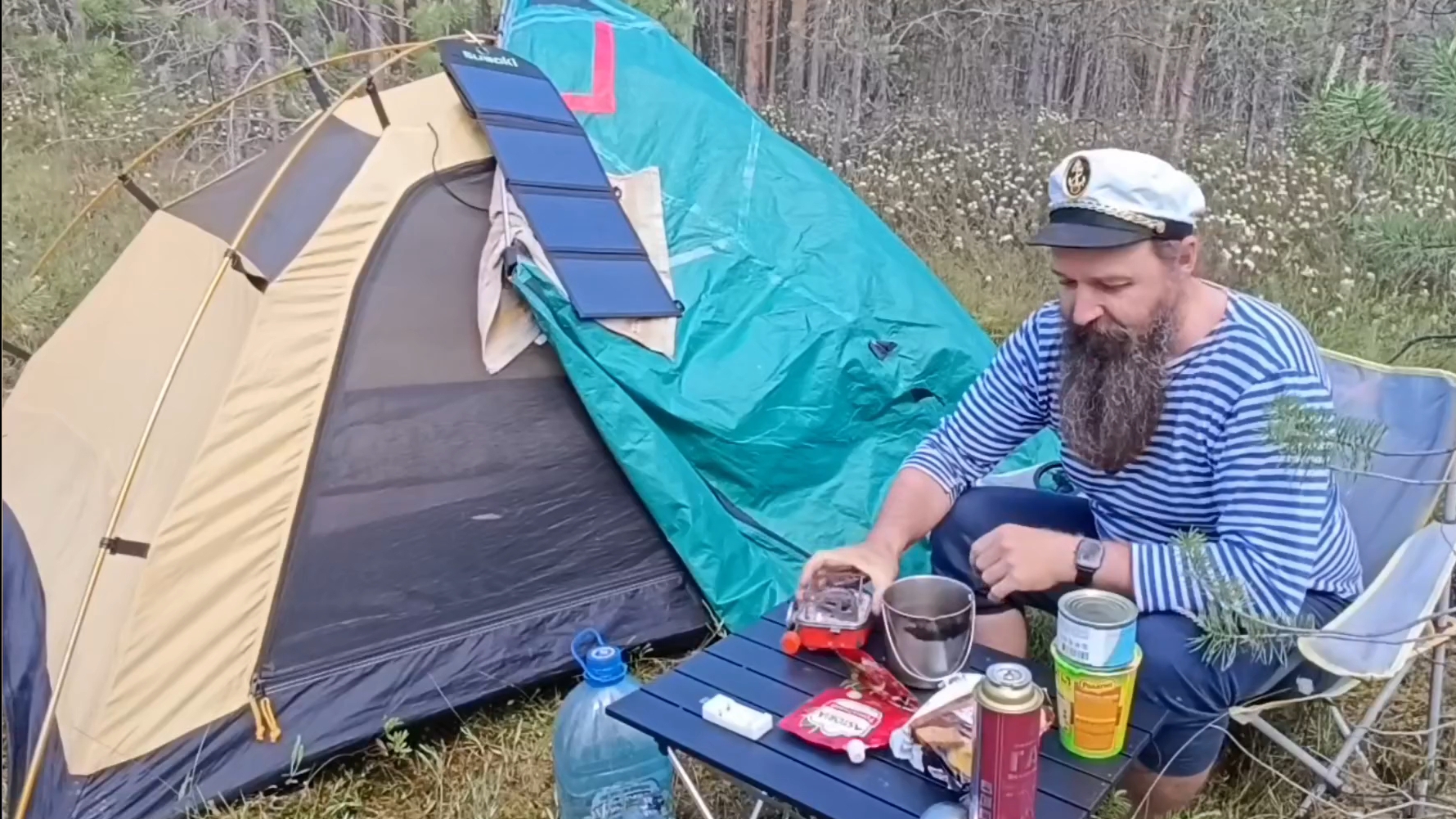 5 день сплава, переплыл бурю в шторм, плавник на лодке сломался, интернет появился, начал кашеварить