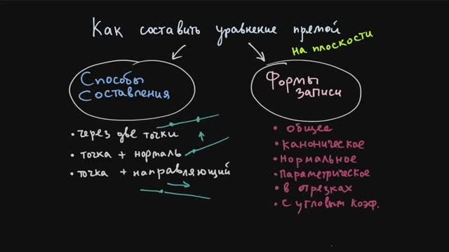 https://dzen.ru/khramovatv каталог видосиков по темам тут: http://t.khr.tilda.ws 00:00-пара фраз о способах составления уравнений и формах их записи 04:23- как составить уравнение по двум точкам 08:00- как составить уравнение по точке и направляющему вектору 11:22- как составить уравнение по точке и нормали 13:56- подробно о разных формах уравнений (каноническое, общее, нормальное, параметрическое, в отрезках и y=kx+b) 21:50- Пример 1. Составляем уравнение и переводим в разные формы 33:00- Пример 2. Составляем уравнение и переводим в разные формы 39:40- Пример 3. Составляем уравнение и переводим в разные формы 44:44- Задача со звёздочкой. Ну как со звёздочкой... с мааааленькой такой
