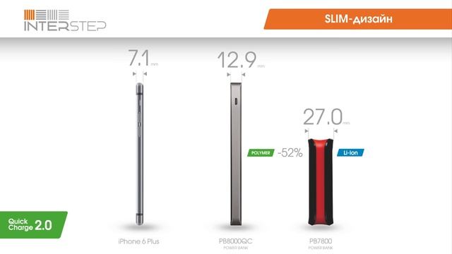 Внешние Аккумуляторы (Power Bank) Interstep 8000 мАч c функцией Quick Charge