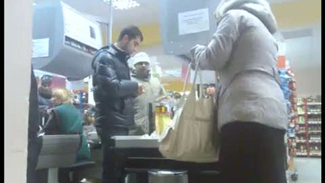 Маг. "Севен" по ул. Афанасьева в Чебоксарах. У кассира не нашлось сдачи с 1000 рублёвой купюры и понеслась... Снята концовка, сюжету предшествовала отборная матерщина :)