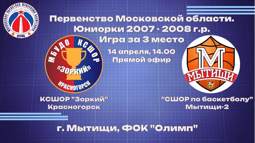 ПМО, юниорки 2007 г.р., Игра за 3 место, КСШОР «Зоркий» Красногорск - СШОР по баскетболу Мытищи-2
